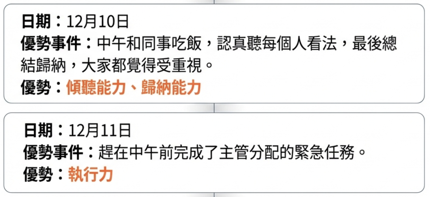 這恰巧能帶我們到第二個重點:優勢日記。